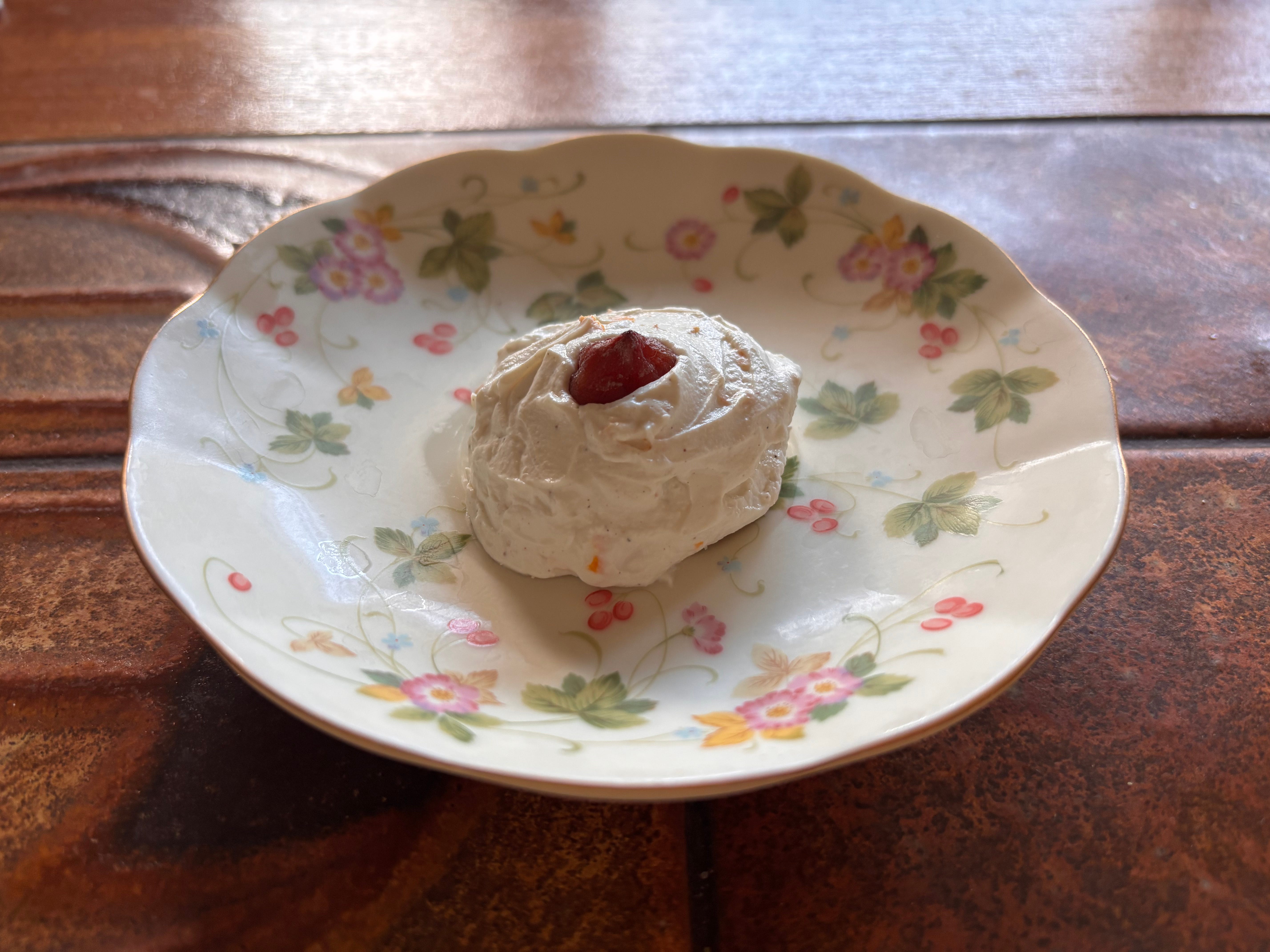 Traditionally St. Agatha is honored with a cake mounded with cassatta ricotta, and topped with a maraschino cherry to simulate her breasts. However I have had to cut out sugar (I know!) from my diet so I made myself a sugar-free version, which was, it turns out, totally divine. I mixed the cheese with orange zest and vanilla bean powder, and placed at the center a ball of pistachio butter that I’d mixed with a bit of butter for an earlier frangipanesque project, and topped it with the tip of a hoshigaki persimmon. Perky!